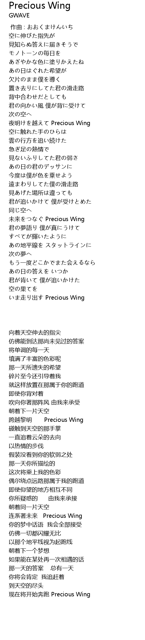 | [02:33.79] | 未来をつなぐ Precious Wing |
