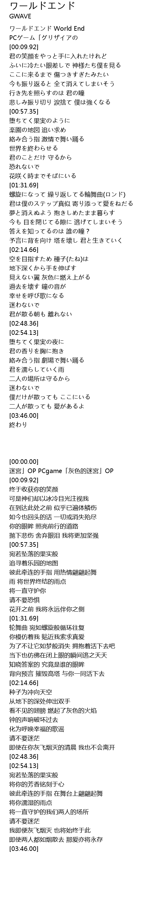 | [00:00.00] | ワールドエンド World End |
