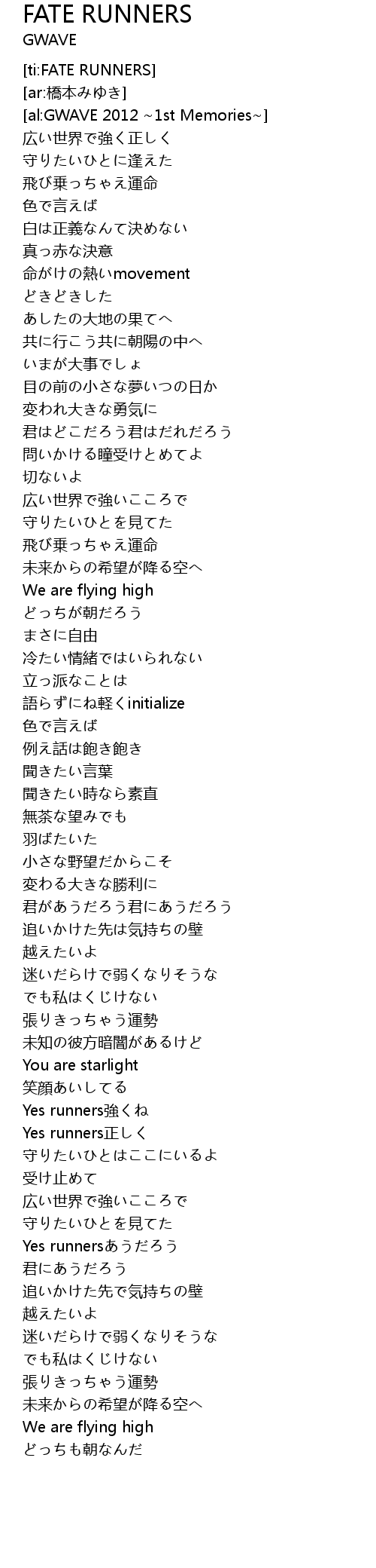| [00:12.52] | 飛び乗っちゃえ運命 |