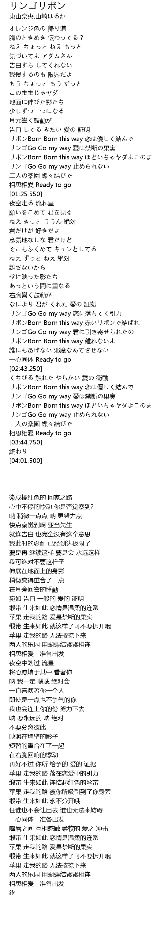 | [02:22.970] | リンゴGo Go my way 君に引き寄せられたの |