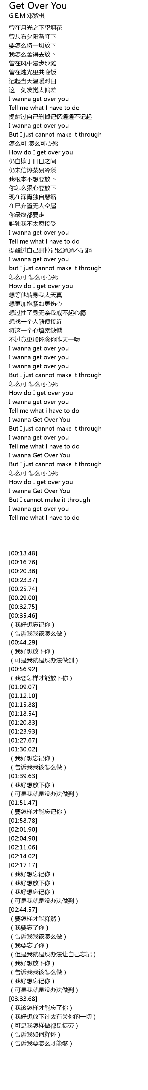 | [03:15.28] | I wanna get over you |