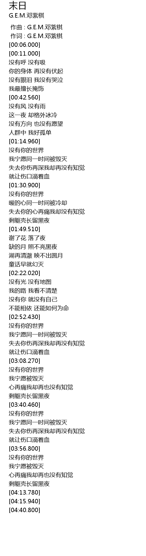 | [00:00.00] | 作曲 : G.E.M.邓紫棋 |