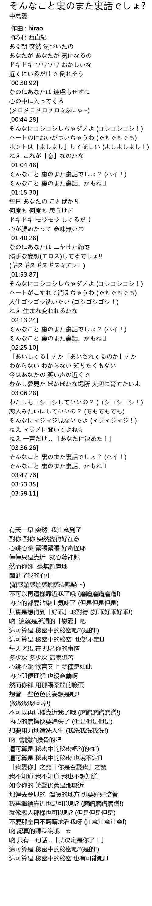 | [03:42.34] | そんなこと 裏のまた裏話、かもね♥ |