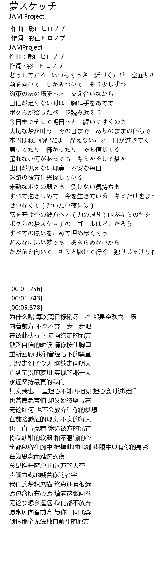 | [02:01.279] | 譲れない何があっても キミをそして梦を |