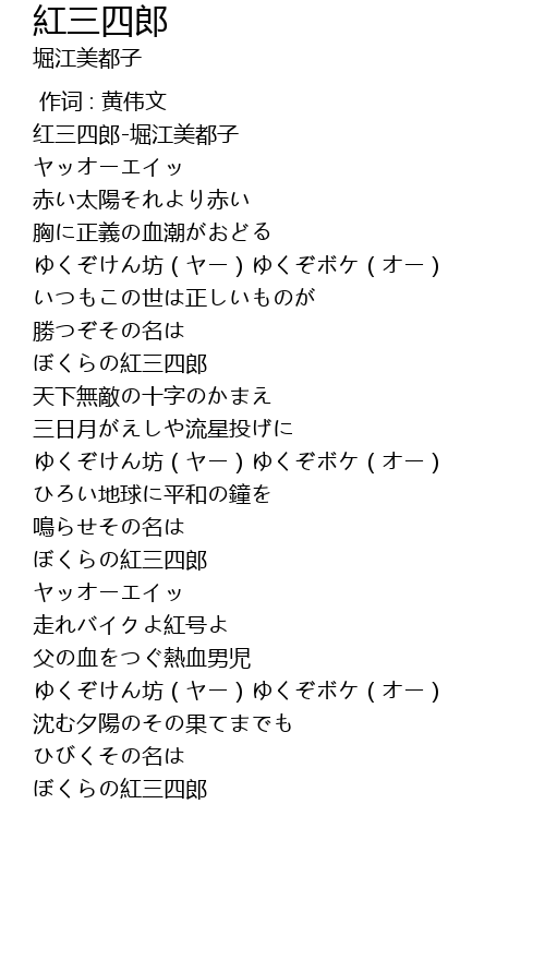 | Song | 紅三四郎 |