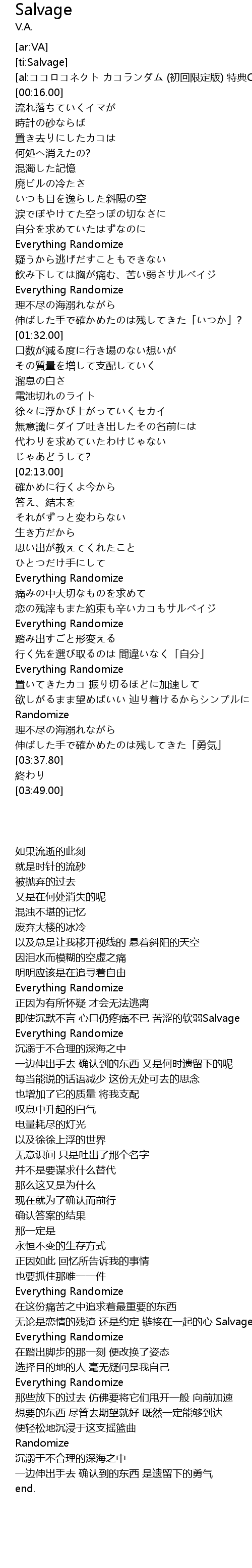 | [02:59.12] | 恋の残滓もまた約束も辛いカコもサルベイジ |