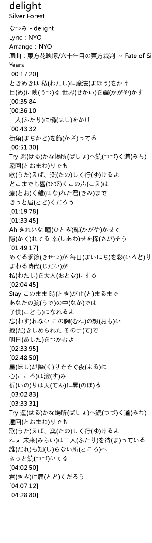 | [00:12.90] | 原曲:東方花映塚/六十年目の東方裁判 ~ Fate of Sixty Years |