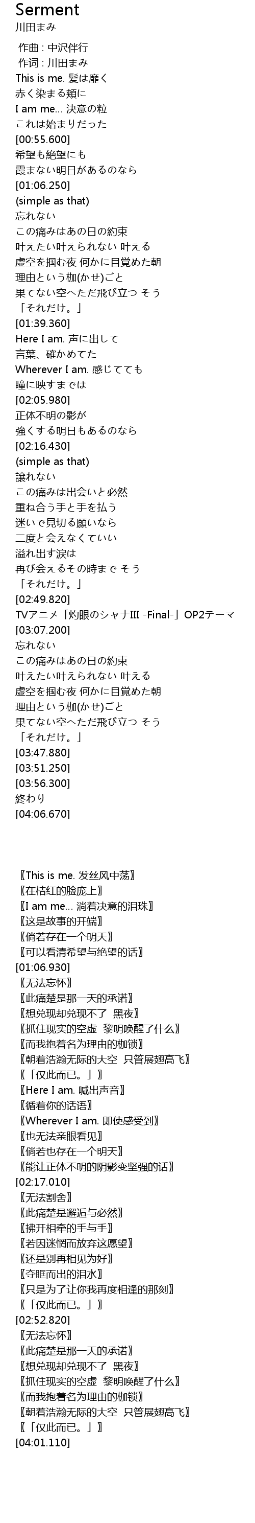 | [02:52.820] | TVアニメ「灼眼のシャナIII -Final-」OP2テーマ |