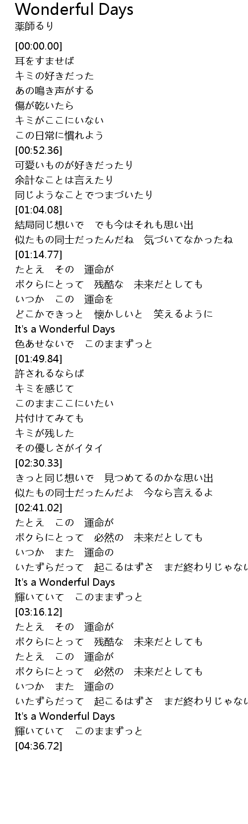 | [01:20.53] | ボクらにとって 残酷な 未来だとしても |