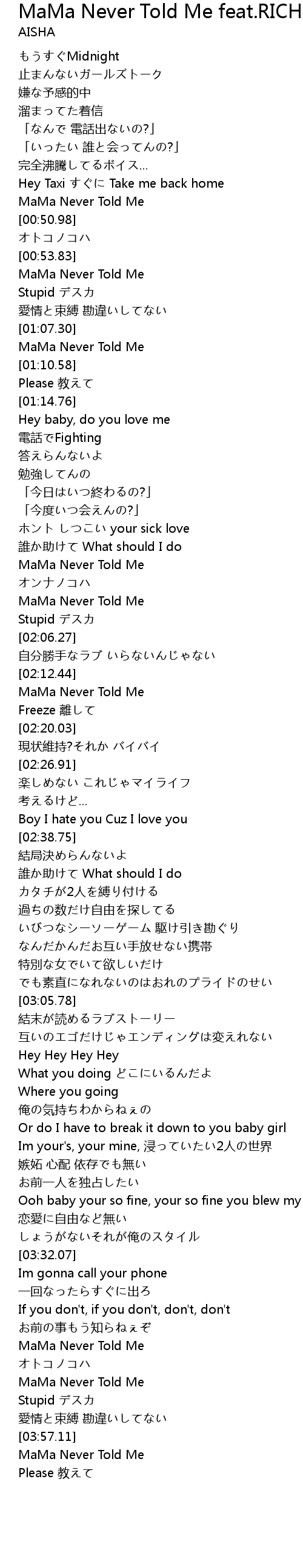 | [03:45.77] | MaMa Never Told Me |
