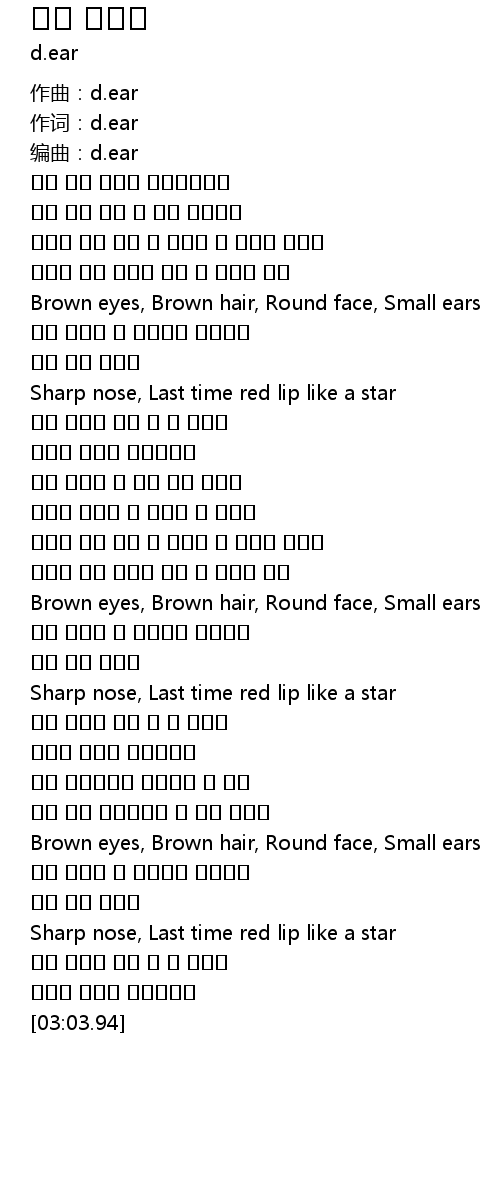 | [01:46.98] | Brown eyes, Brown hair, Round face, Small ears |