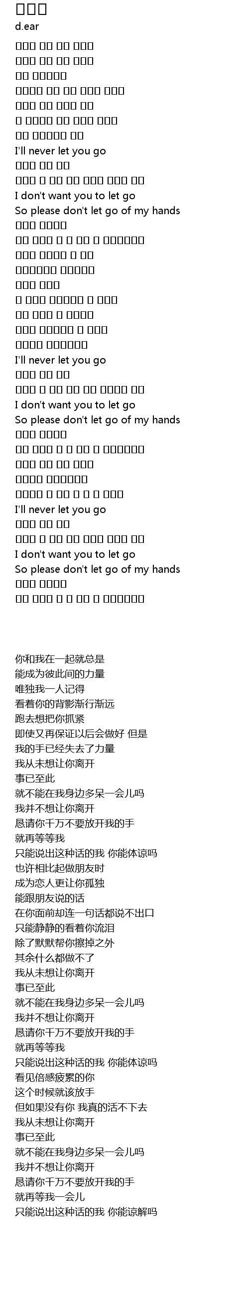 | [00:50.590] | So please don' t let go of my hands |
