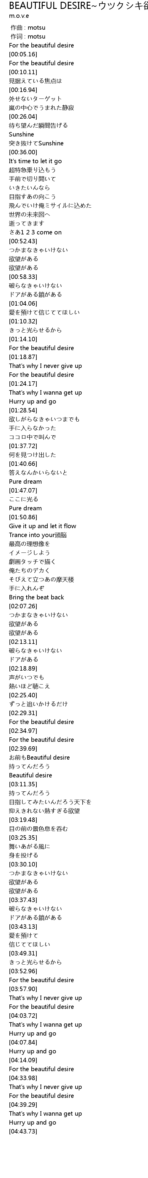 | [03:16.43] | 抑えきれない熱すぎる欲望 |