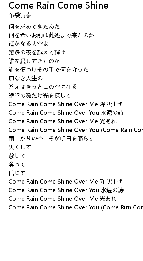 | Come Rain Come Shine Over You Come Rirn Come Shine |