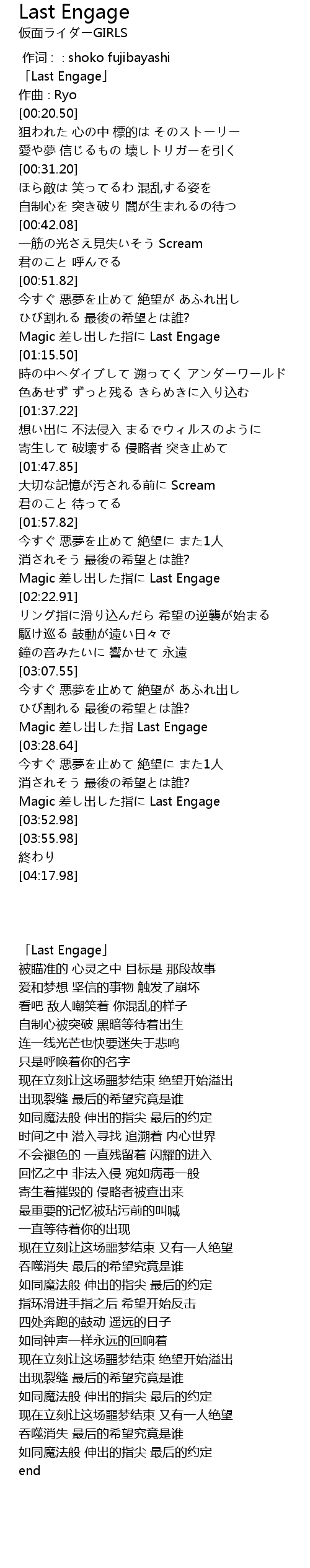 | [03:44.96] | Magic 差し出した指に Last Engage |