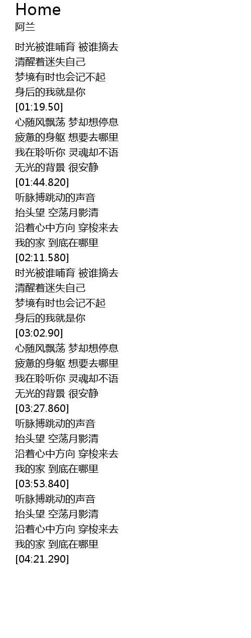 | [02:04.560] | 我的家 到底在哪里 |