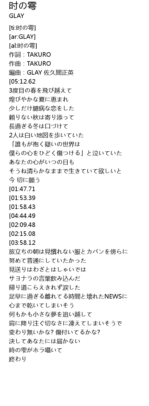 | [00:54.83] | 編曲:GLAY 佐久間正英 |