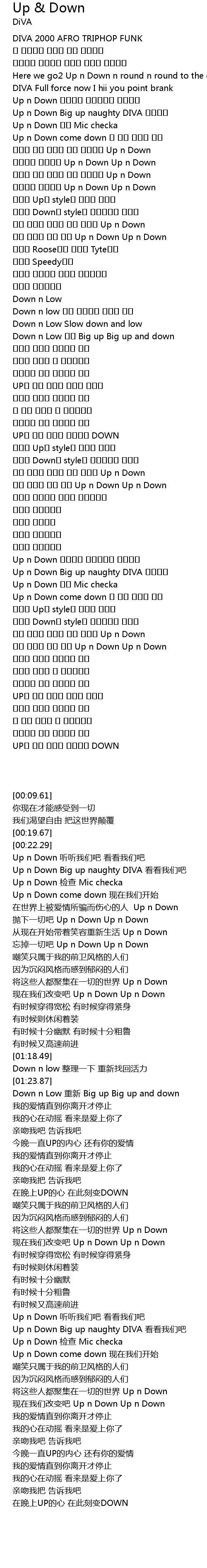 | [00:27.28] | Up n Down Big up naughty DIVA |