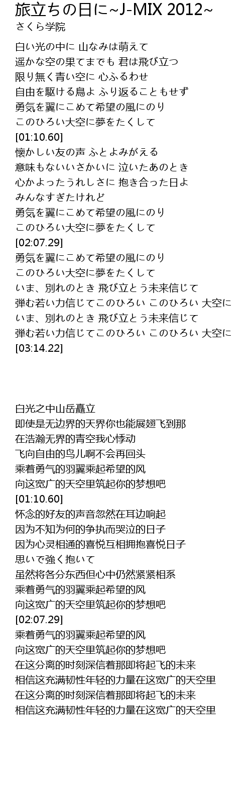 | Song | 旅立ちの日に~J-MIX 2012~ |