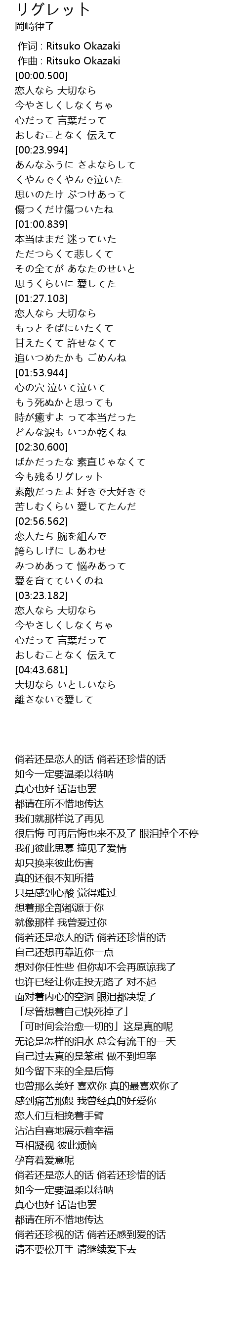 作词 : Ritsuko Okazaki |
