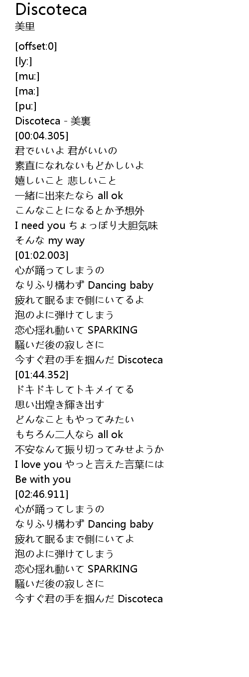 | [00:00.752] | Discoteca - 美裏 |