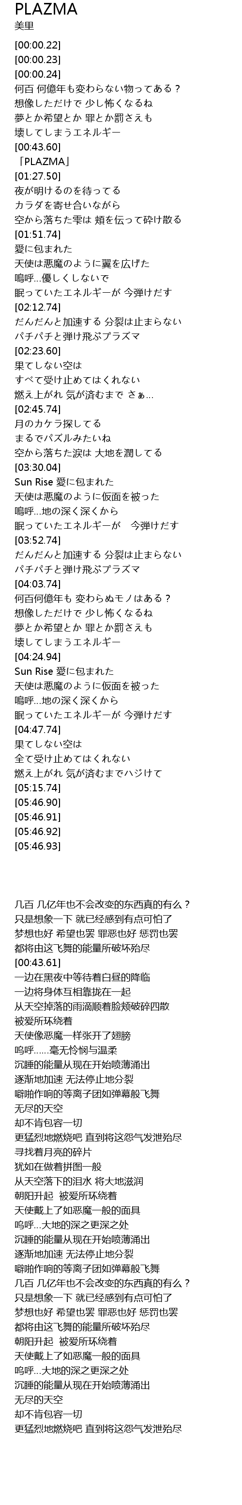 | [00:43.61] | 「PLAZMA」 |