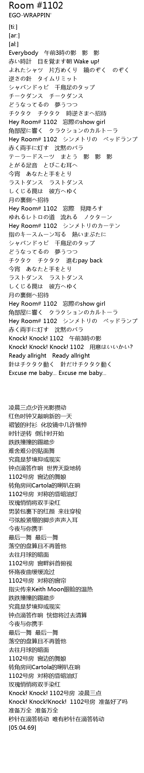 | [04:06.55] | Hey Room 1102 chuāng jì show girl |