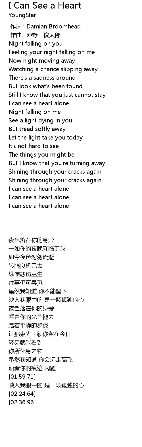 | [00:00.000] | zuo ci : Damian Broomhead |
