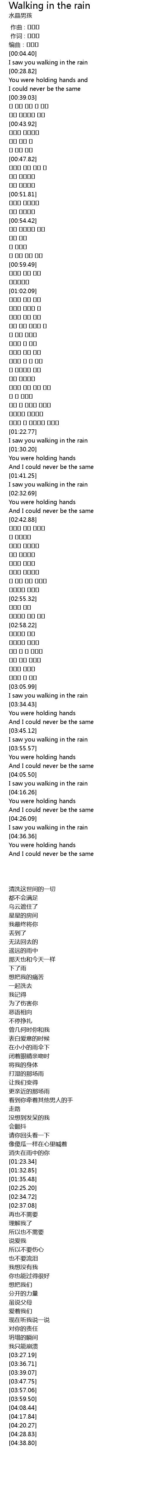 | [04:08.44] | I saw you walking in the rain |
