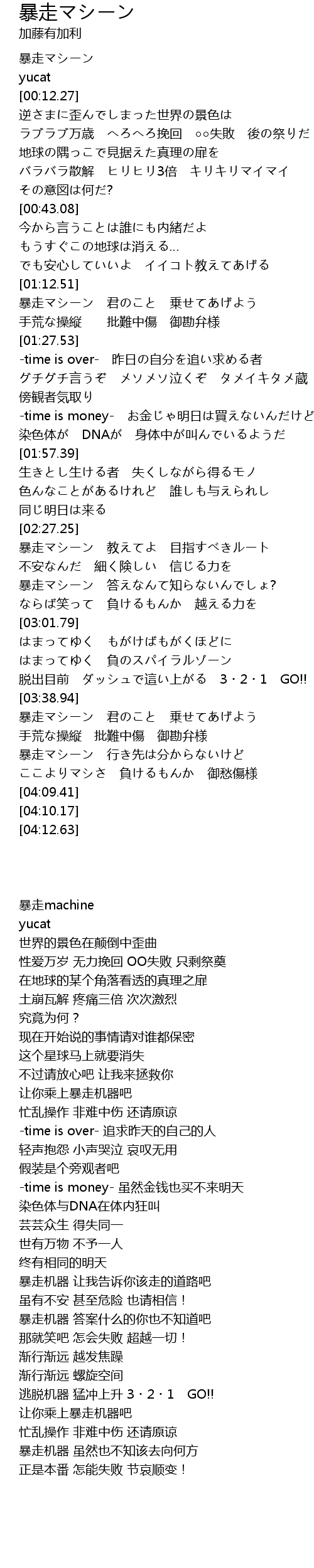 | [03:54.97] | 暴走マシーン 行き先は分からないけど |