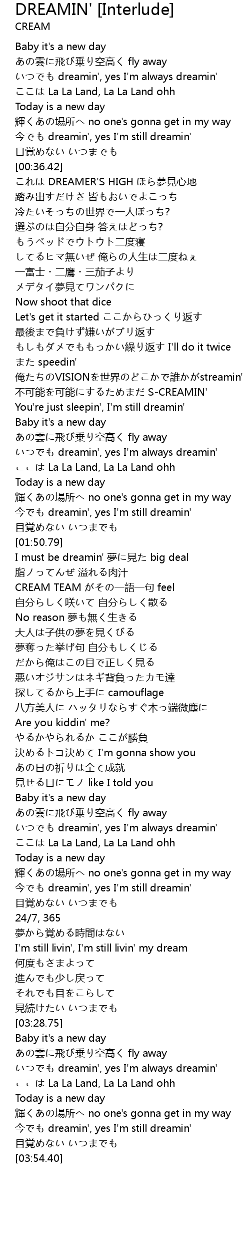 | [01:57.39] | CREAM TEAM がその一語一句 feel |