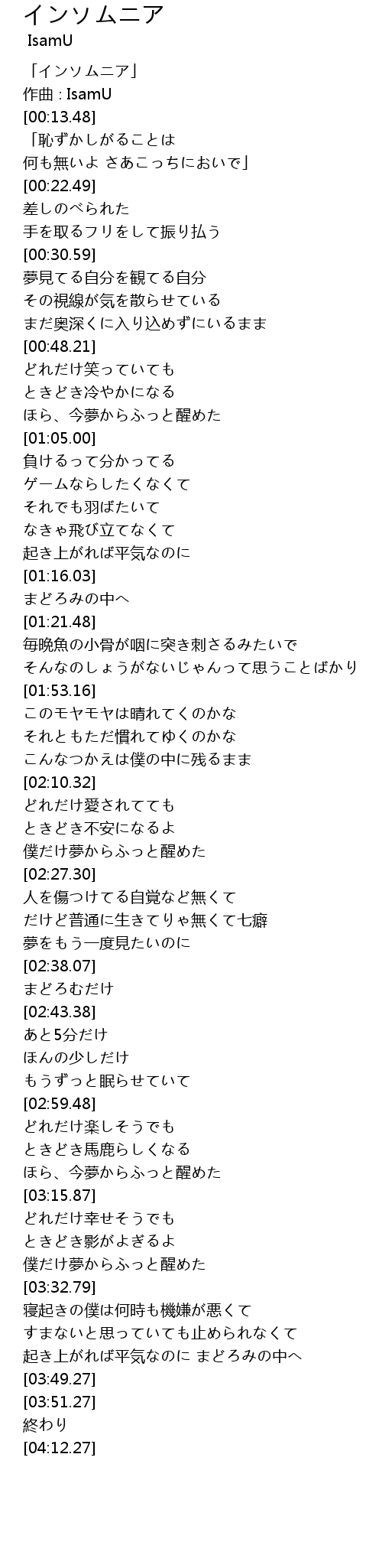 | [00:00.48] | 「インソムニア」 |