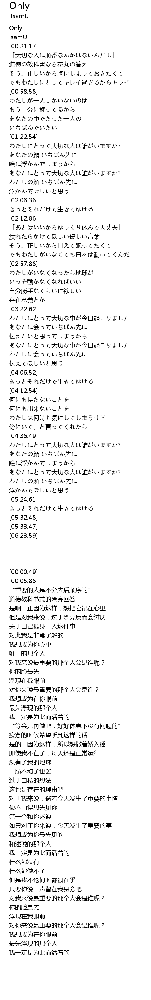 | [05:03.96] | あなたにとって大切な人は誰がいますか? |