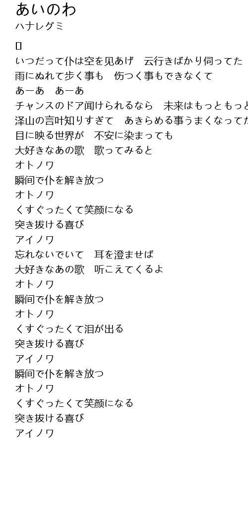 | 泽山の言叶知りすぎて あきらめる事うまくなってた | |