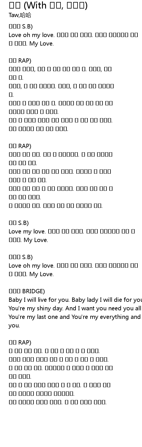 Love oh my love. 아직은 내가 작아요. 해줄게 사랑밖에는 다른 게 없네요. My Love. |