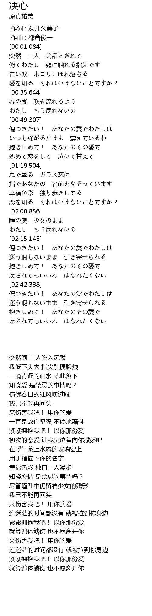| [02:36.957] | 壊されてもいいわ はなれたくない |