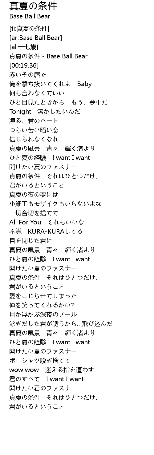 | [00:00.00] | 真夏の条件 - Base Ball Bear |