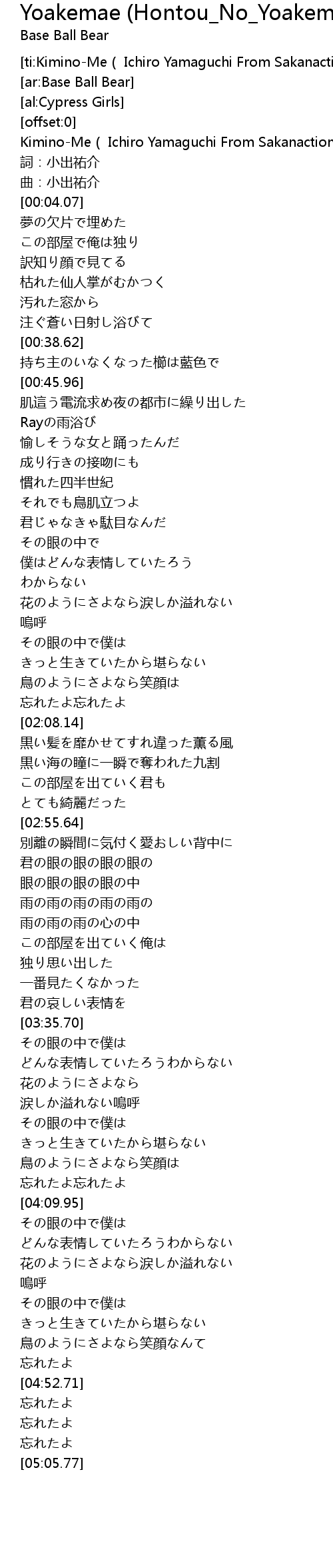 | [00:00.91] | KiminoMe Ichiro Yamaguchi From Sakanaction Base Ball Bear |