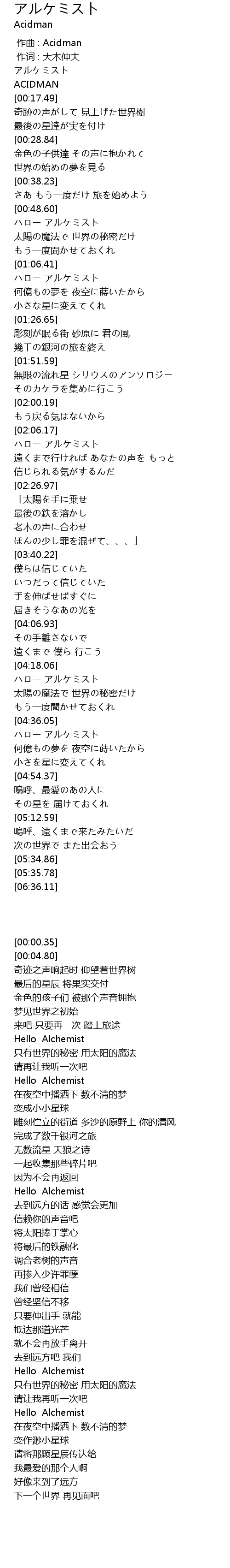 | [00:00.35] | アルケミスト |