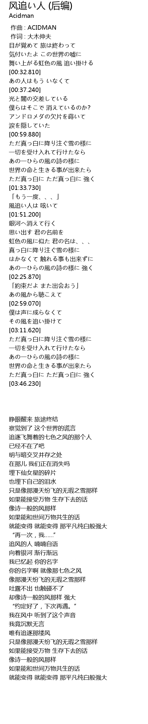 | [00:00.00] | zuò qǔ : ACIDMAN |