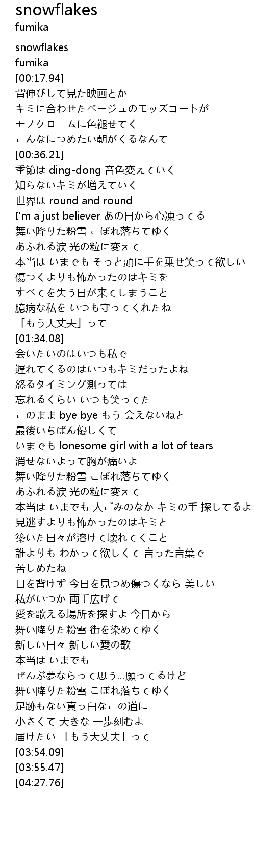 | [00:47.33] | I'm a just believer あの日から心凍ってる |