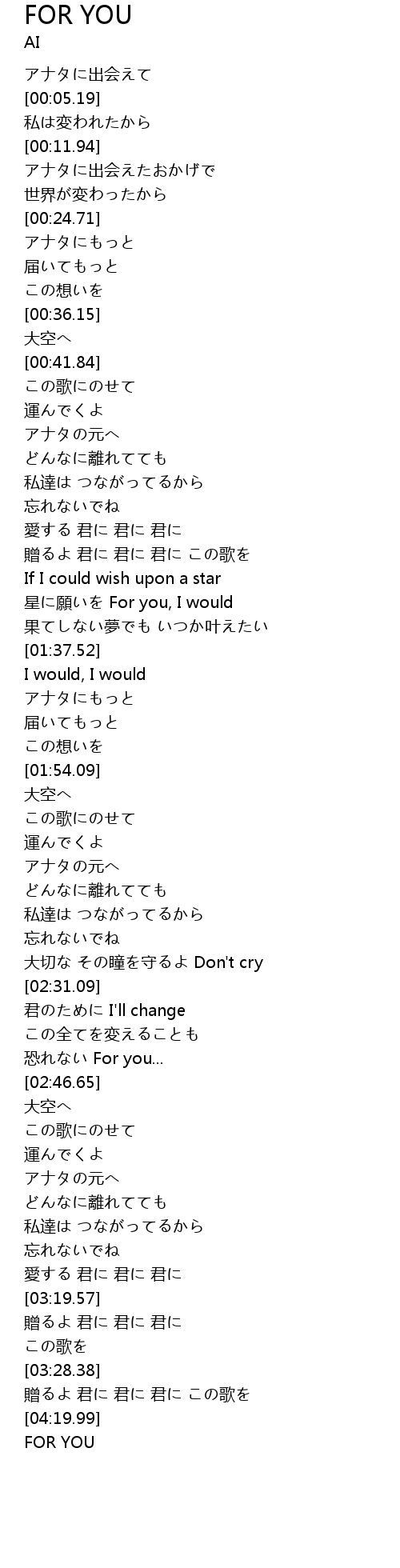 | [01:09.98] | 贈るよ 君に 君に 君に この歌を |