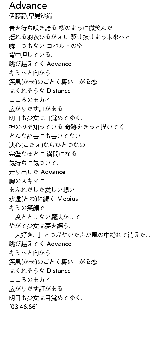 | [02:19.44] | 永遠(とわ)に続く Mebius |