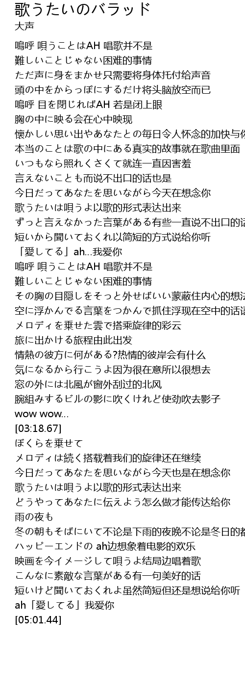 | [04:04.75] | 歌うたいは唄うよ以歌的形式表达出来 |