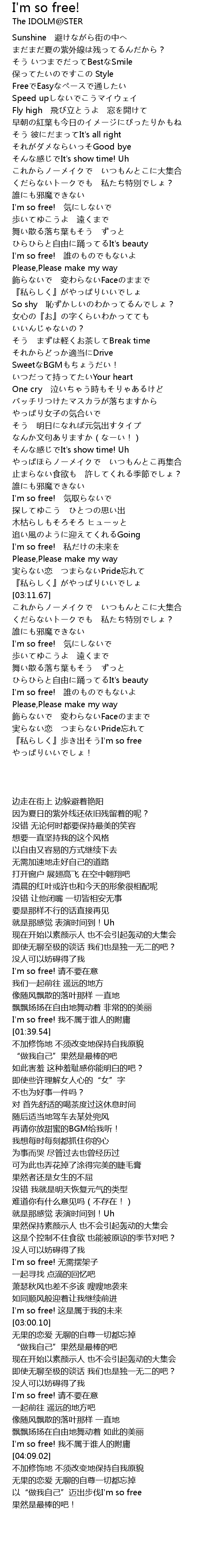 | [01:34.60] | I'm so free! 誰のものでもないよ |