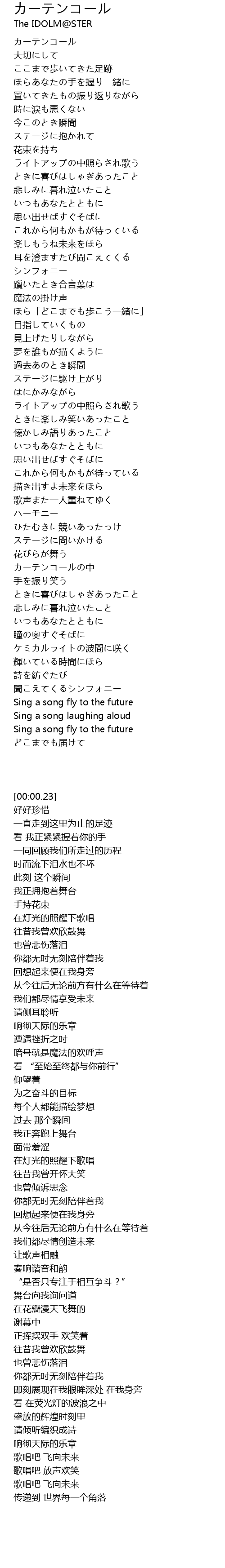 | [00:00.23] | カーテンコール |