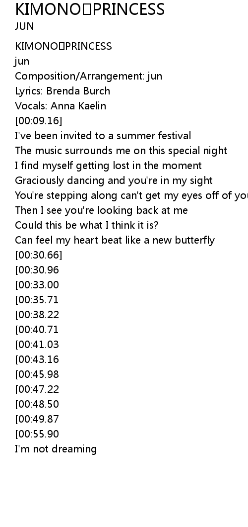 | [01:25.15][00:49.87] | And you make me feel like I am a KIMONO♥PRINCESS |