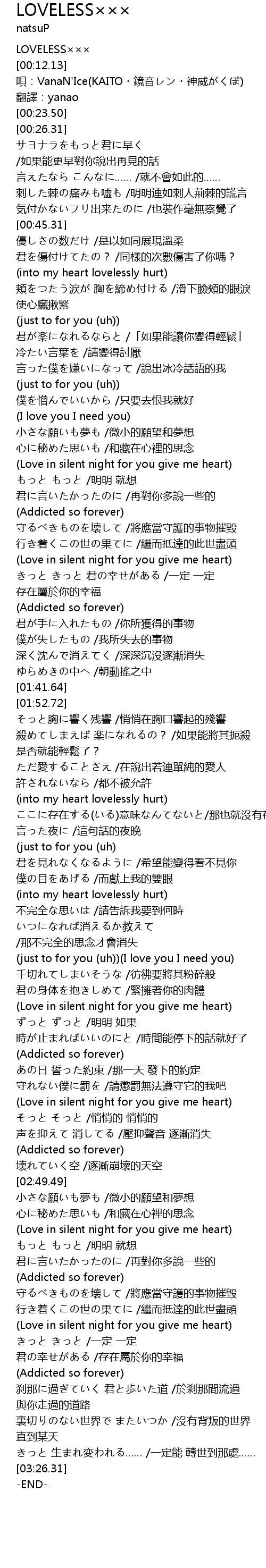 | [02:19.50] | (into my heart lovelessly hurt) |