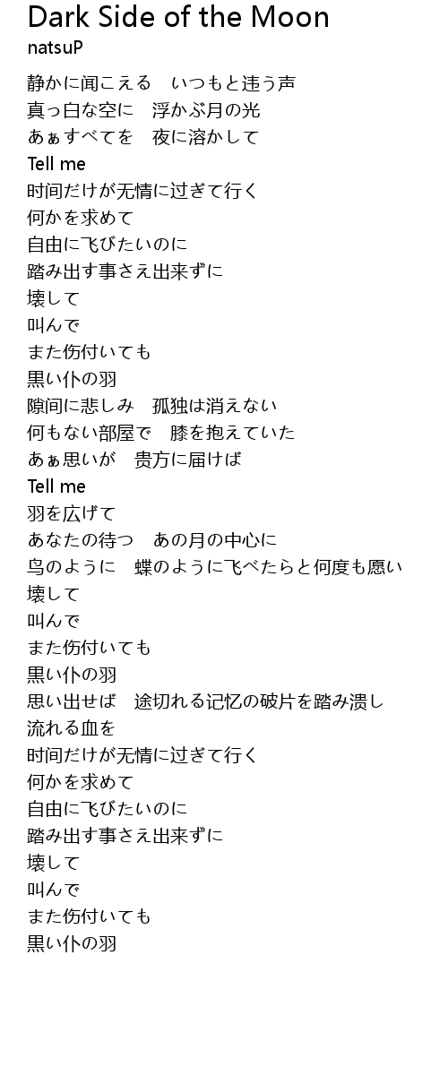 | [02:14.42] | あなたの待つ あの月の中心に |