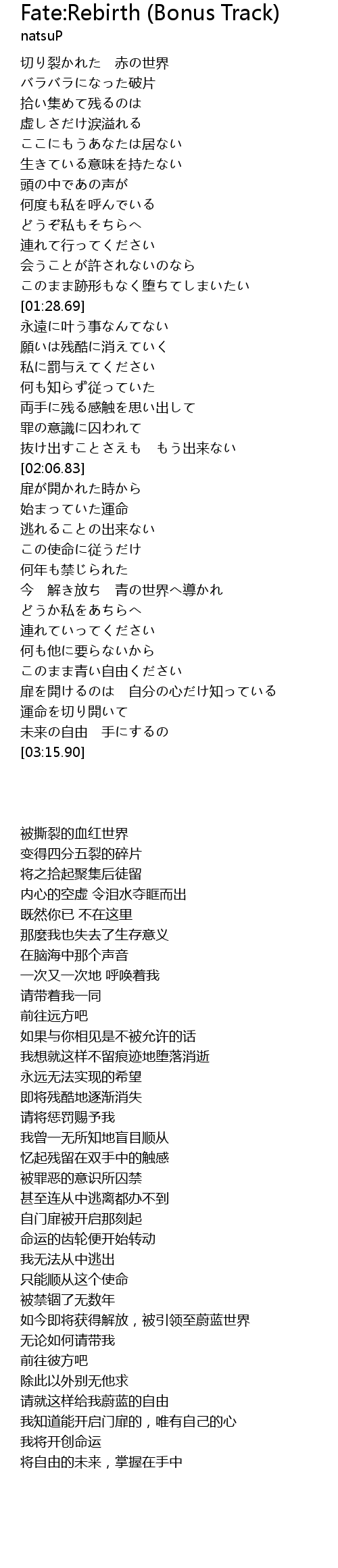 | [02:19.78] | 始まっていた運命 |